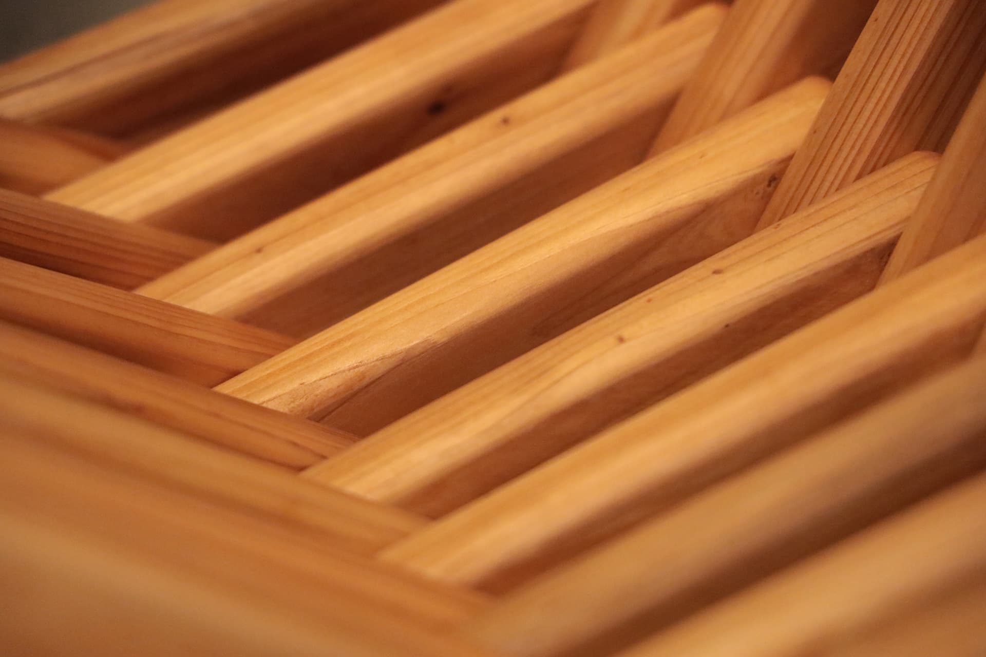 手作業でサンディングされた滑らかな木材が美しく噛み合い、使うほどに味わいを深めます。天然木材は木目や色がバラエティに冨み、同じ形・塗料でも一つ一つ異なる表情を持っています。反る、節がある、ムラがある、傷やヒビが入るといった木材ならではのデメリットも、季節による微妙な木の変化も天然材の味としてお楽しみいただければ幸いです。